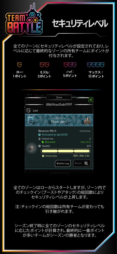 ちなみに占拠するチームが変わってもセキュリティレベルは引き継がれるのでMAXレベルのエリア奪い合いが起こるとポイントが一気に大きく動きます。