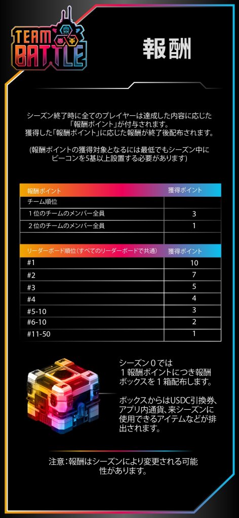 まあ、そもそも何を持って稼げるとみなすかは人それぞれだと思いますが、いわゆる数十万レベルの「爆益」が得られることはこのチームバトルではなさそうです。報酬の規定は以下のようになっています。