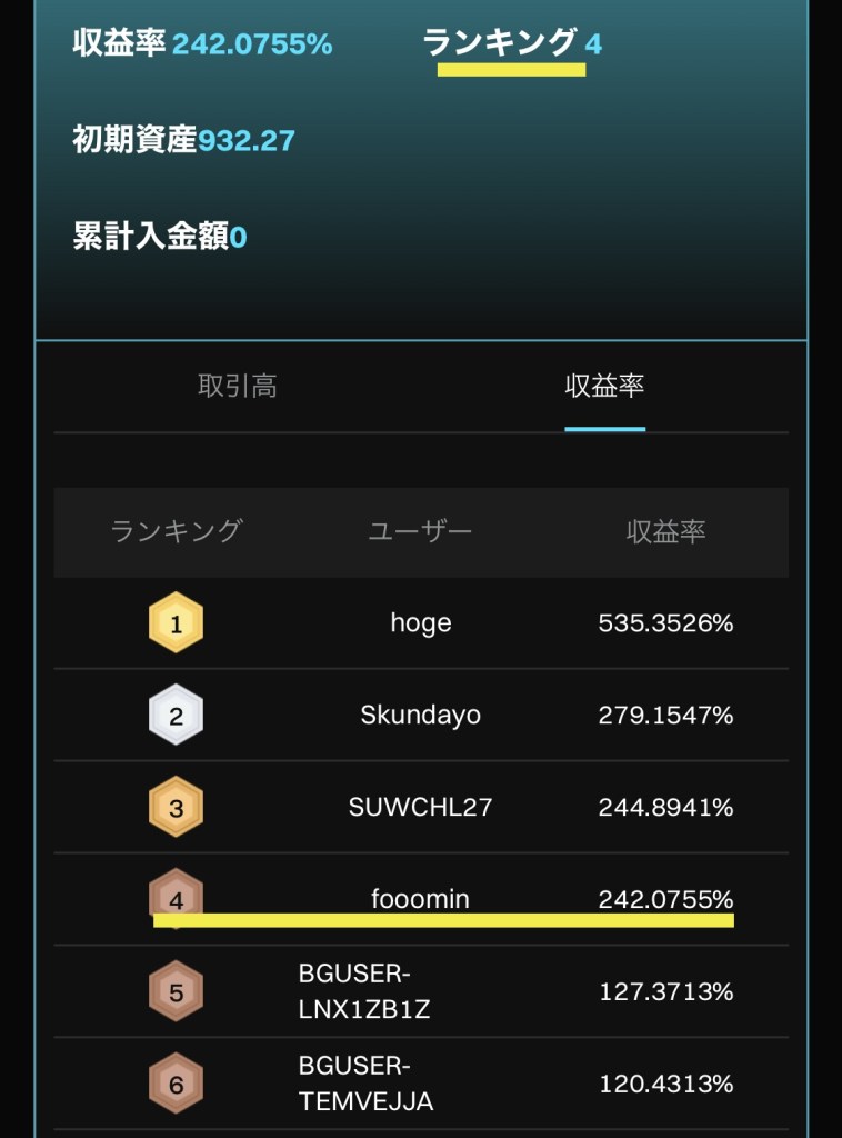 僕はトレードは第一戦場ではないですが、頻繁にやっています。どれくらい頻繁かというと、一応2023年9月に開催されたBitgetのトレード大会(収益率の部)で4位になったくらいには頻繁にトレードしています。
