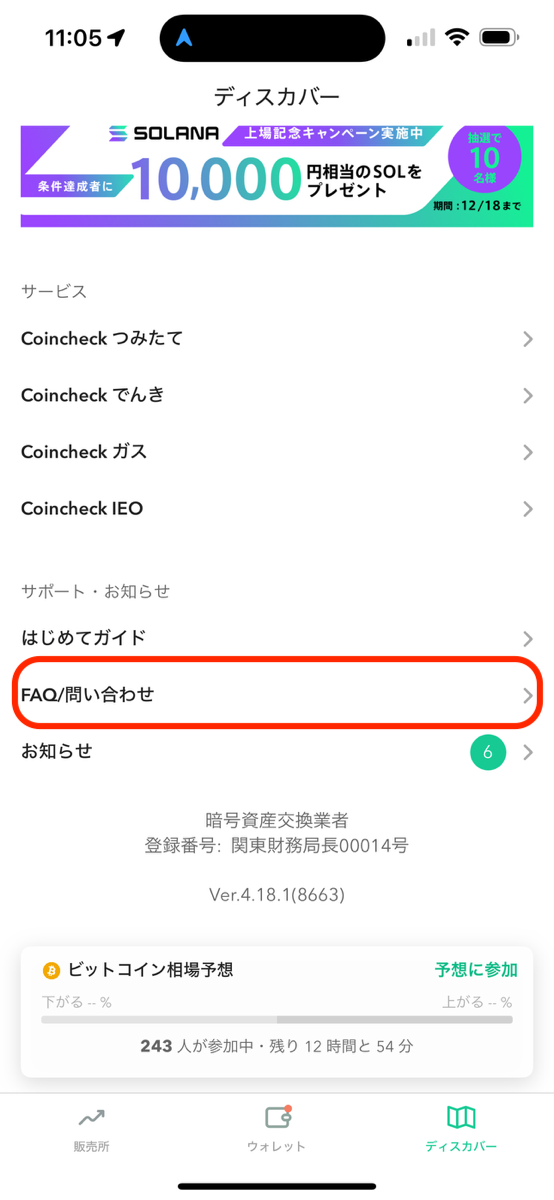 上記の通り取引所への導線はなぜかFAQの中にあるという謎仕様なので、初見殺しですが、まあ一度使えば慣れます。