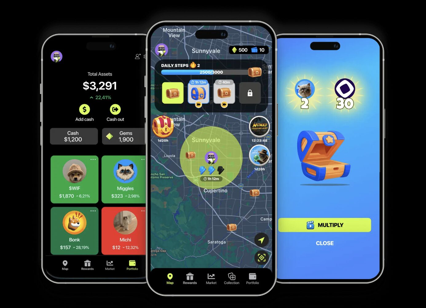 - LOOTGOは“歩く×宝探し”のM2E。 地図上の宝箱を拾って、外部プロジェクトのトークンやWL、抽選権などを獲得。