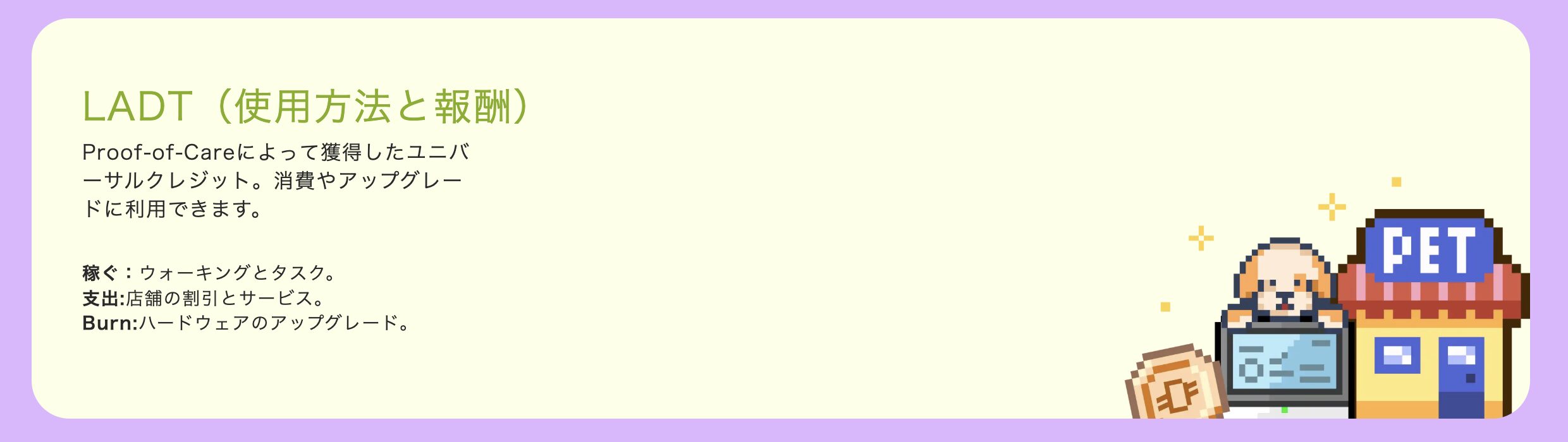 LADTは暗号資産ではなく、マイルやリワードのようなポイントとして位置づけられています。非上場であることで市場での投機売却ができず、売り圧が生まれにくい設計です。